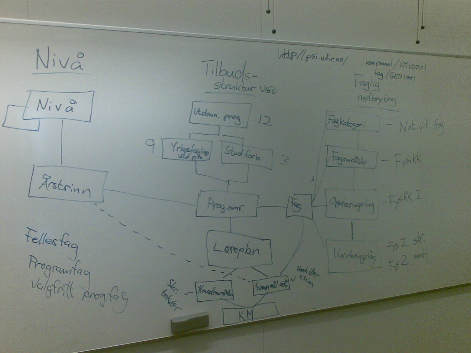 Åsmund Mæhle drew a diagram of the Grep ontology on a whiteboard using a simple notation.